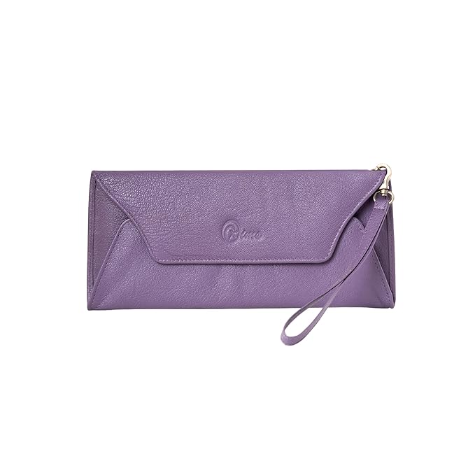 Oxims Genuine Leather Envelope Womens Clutch Wallets Ladies Purse with Detachable Strap & Mobile Slot with Multiple Card Slots (Purple)